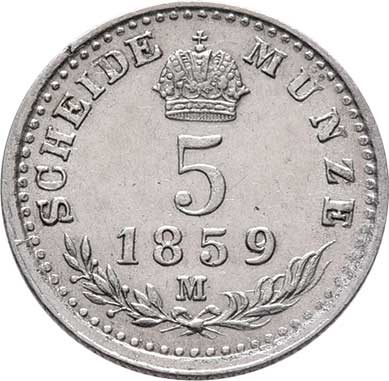 | 2112. | 5 Krejcar 1859 M, 1.204g, nep.hr., nep.rysky, pěkná