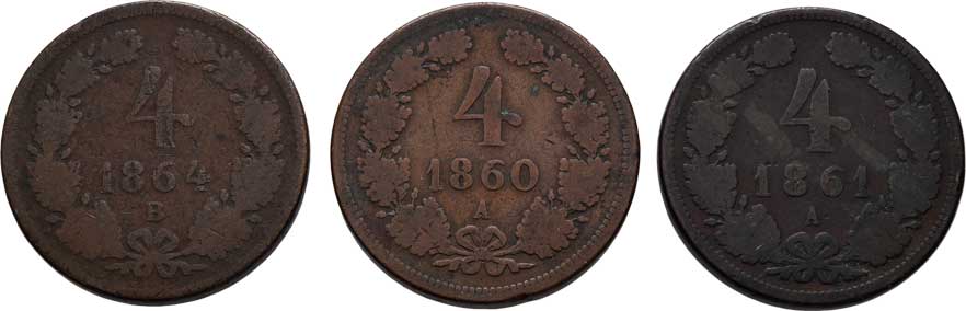 | 2113. | 4 Krejcar 1860 A, 1861 A, 1864 B, 12.865g, 12.797g,