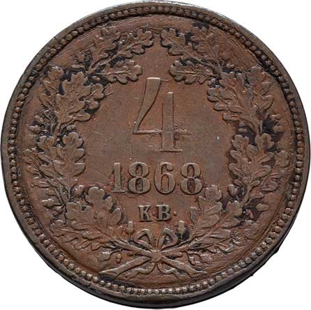 | 2117. | 4 Krejcar 1868 KB - šroubovací, pouze 8.932g, dr.hr.,