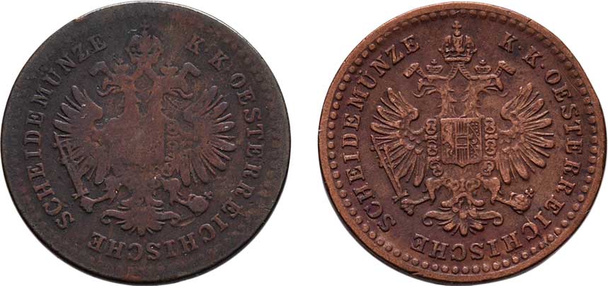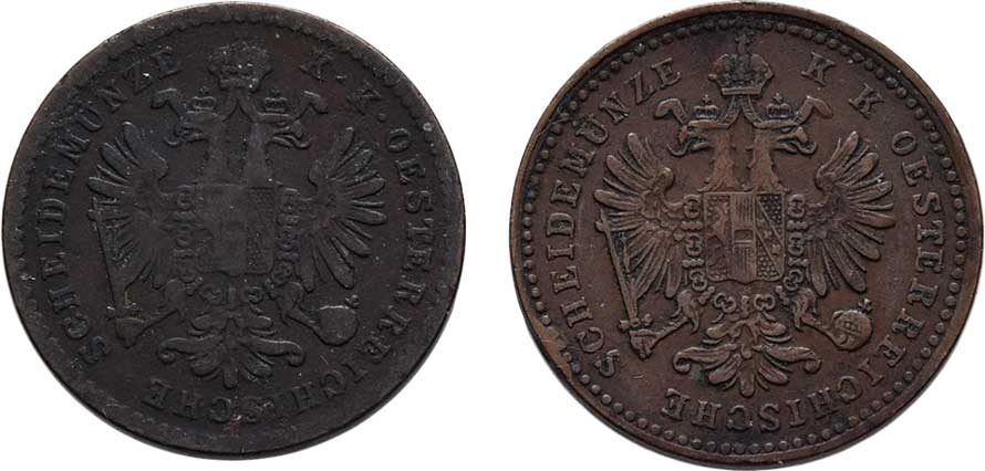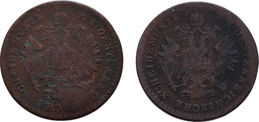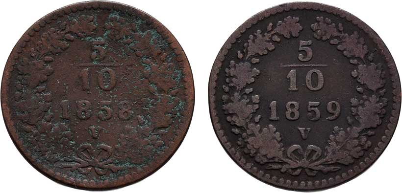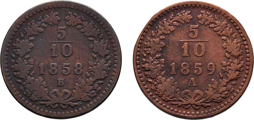 | 2135. | 5/10 Krejcaru 1859 A, 1858 B, 1.719g, 1.515g,