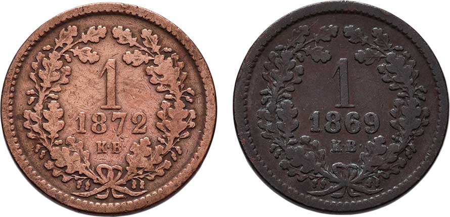 | 2132. | Krejcar 1869 KB, 1872 KB, 3.176g, 3.085g, dr.hr.,
