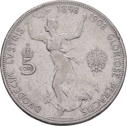 | 2147. | 5 Koruna 1908 - jubilejní, 23.966g, hr., dr.rysky,