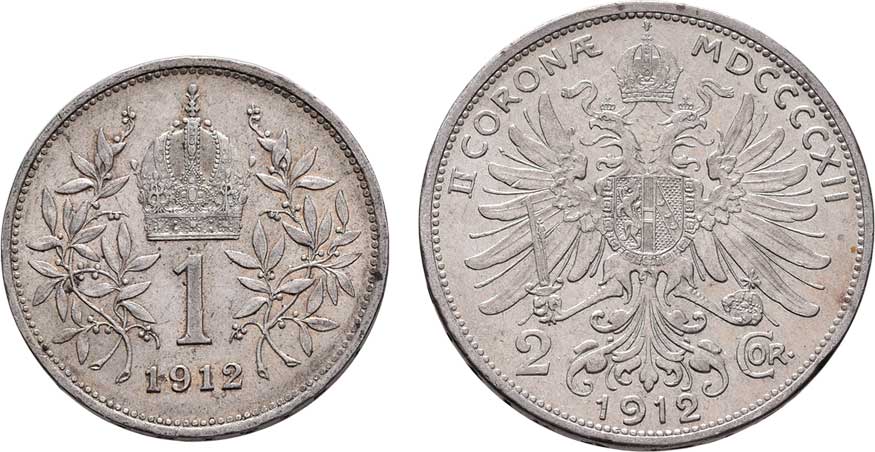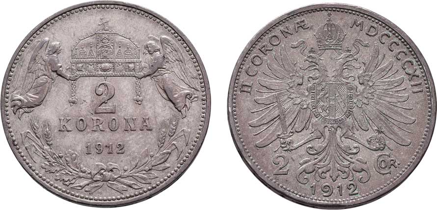 | 2154. | 2 Koruna 1912, Koruna 1912, 9.861g, 5.011g, nep.hr.,