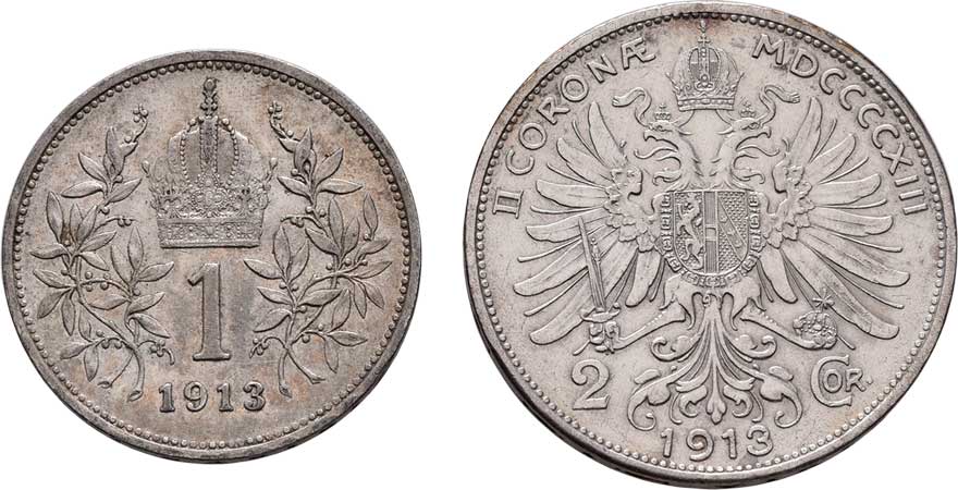 | 2156. | 2 Koruna 1913, Koruna 1913, 9.931g, 4.999g, nep.hr.,