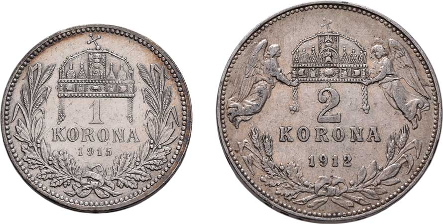 | 2158. | 2 Koruna 1912 KB, Koruna 1915 KB, 9.980g, 4.992g,