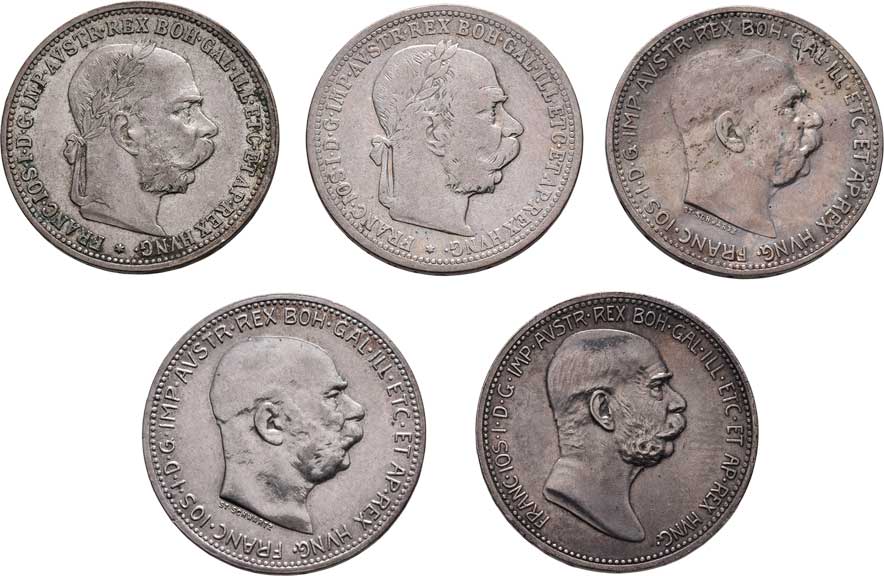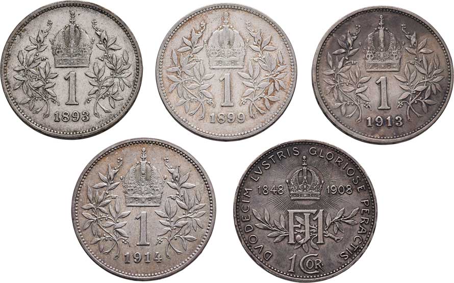 | 2159. | Koruna 1893, 1899, 1908 - jubilejní, 1913, 1914,
