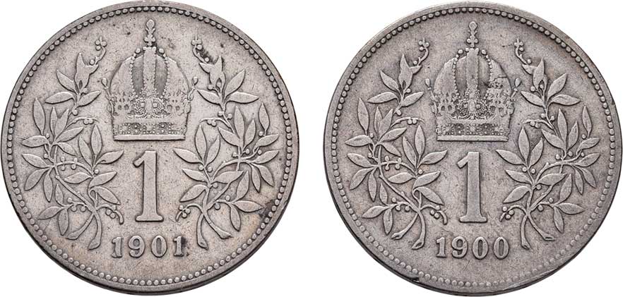| 2171. | Koruna 1900, 1901, 4.966g, 4.894g, dr.hr., nep.rysky,