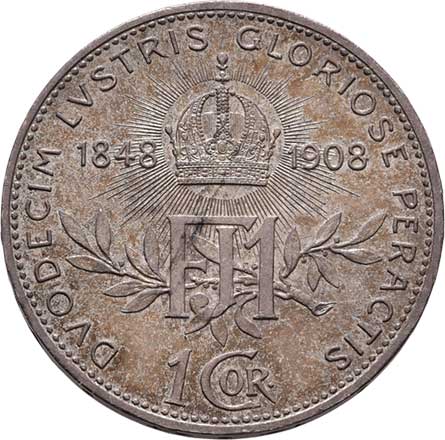 | 2180. | Koruna 1908 - jubilejní, 4.949g, zcela nep.rysky,