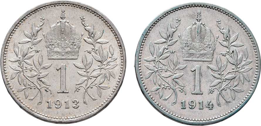 | 2184. | Koruna 1913, 1914, 4.969g, 4.961g, nep.hr.,