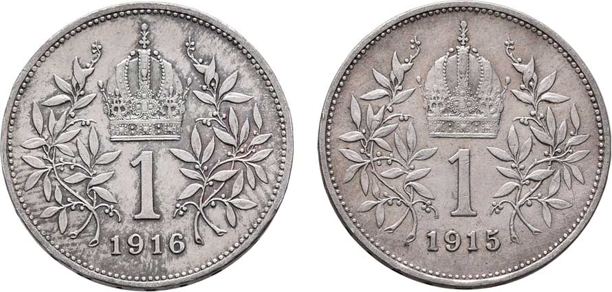 | 2185. | Koruna 1915, 1916, 4.996g, 4.960g, nep.hr.,