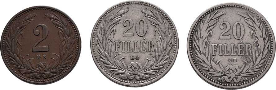 | 2199. | 20 Haléř 1892 KB, 20 Haléř 1907 KB, 2 Haléř 1910 KB,