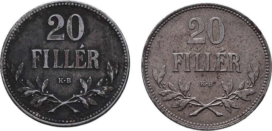| 2200. | 20 Haléř 1916 KB (Fe), 1920 KB (Fe), 3.329g, 3.424g,