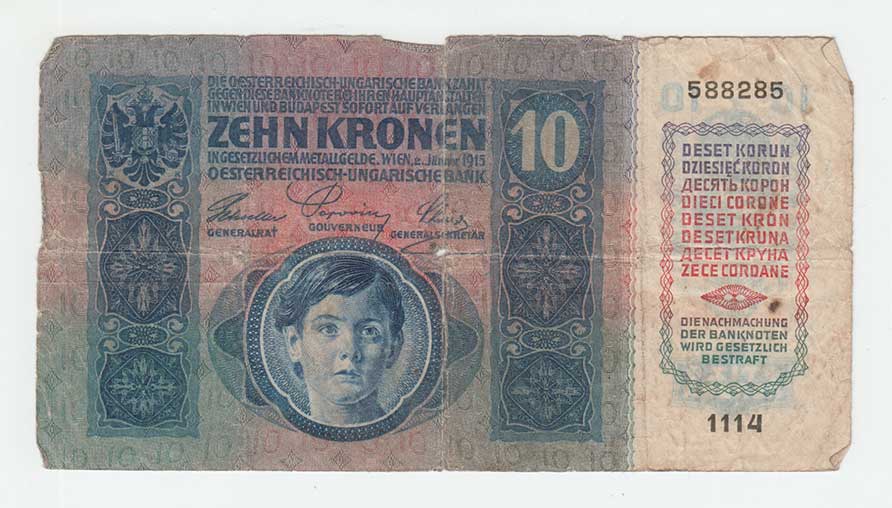 | 3103. | 10 Koruna 1915 - stříhaný kolek, série 1114, BHK.1a,