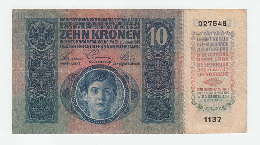 | 3104. | 10 Koruna 1915 - stříhaný kolek, série 1137, BHK.1a,