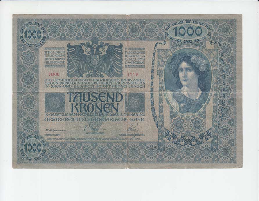 | 3108. | 1000 Koruna 1902 - kolkovaná, sér. 1119, BHK.6,