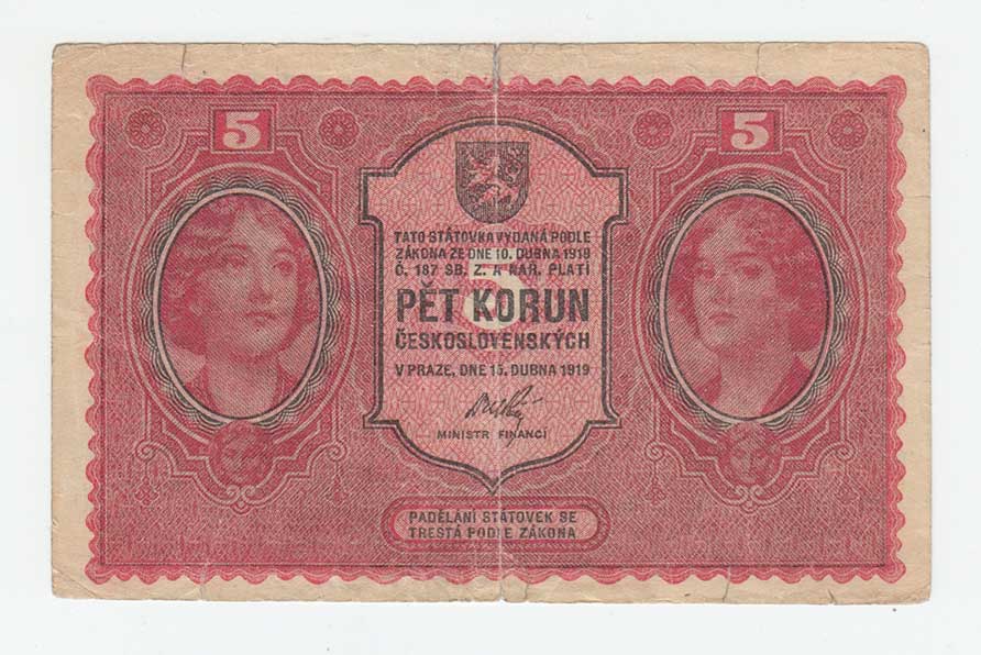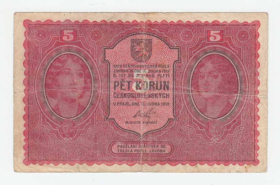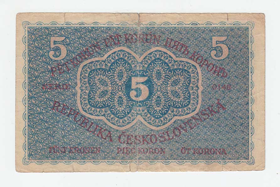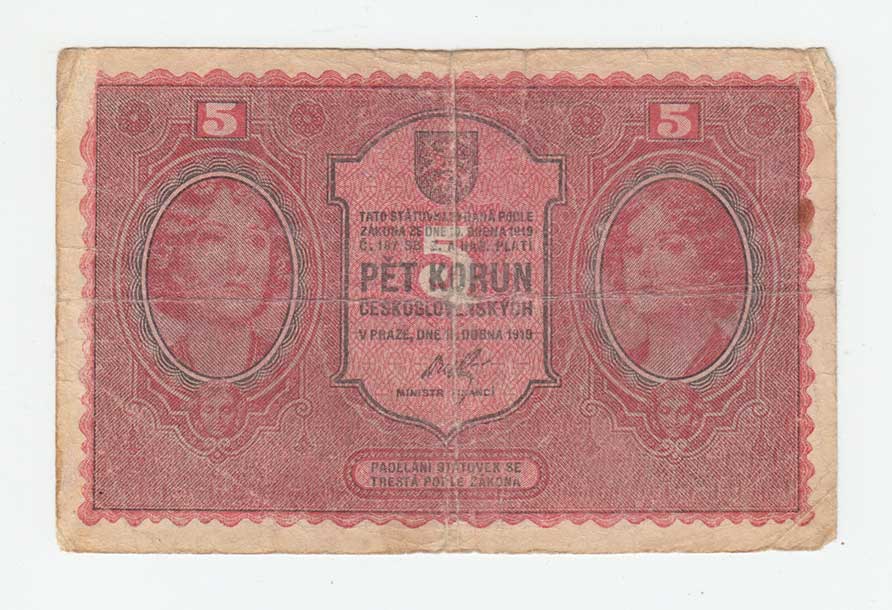 | 3115. | 5 Koruna 1919, série 0148, BHK.8, He.8a, "neperf.",