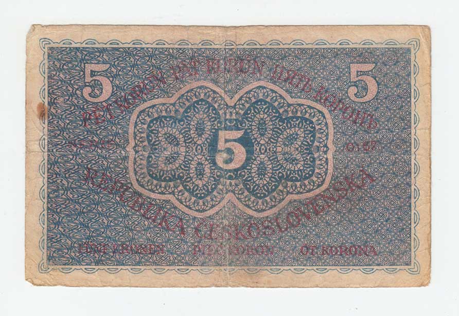 | 3182. | 5 Koruna b.l. - ruční přetisk, série A003, BHK.29a,