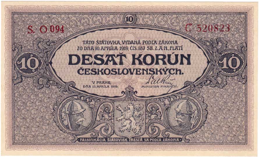 | 3117. | 10 Koruna 1919, série O094, BHK.9b, He.9b, "neperf." | N | 30000,- | 47000,- |