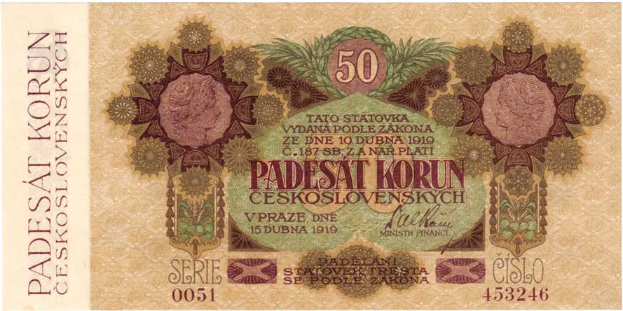 | 3120. | 50 Koruna 1919, série 0051 - široké sériové číslo,
