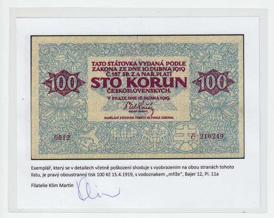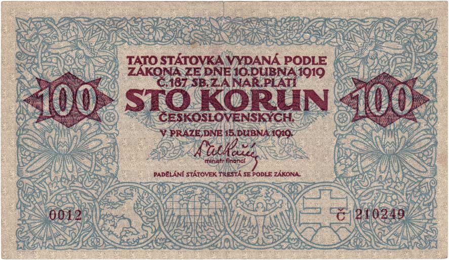| 3121. | 100 Koruna 1919, série 0012, BHK.12, He.12a,