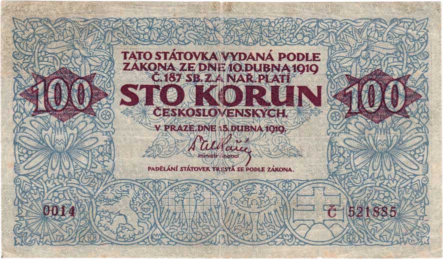 | 3122. | 100 Koruna 1919, série 0014, BHK.12, He.12a,