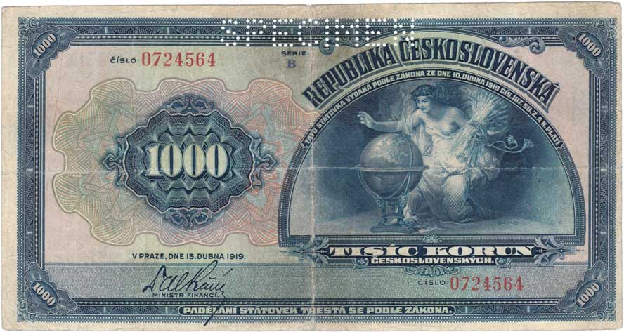 | 3125. | 1000 Koruna 1919, série B, BHK.14, He.14a.s1,