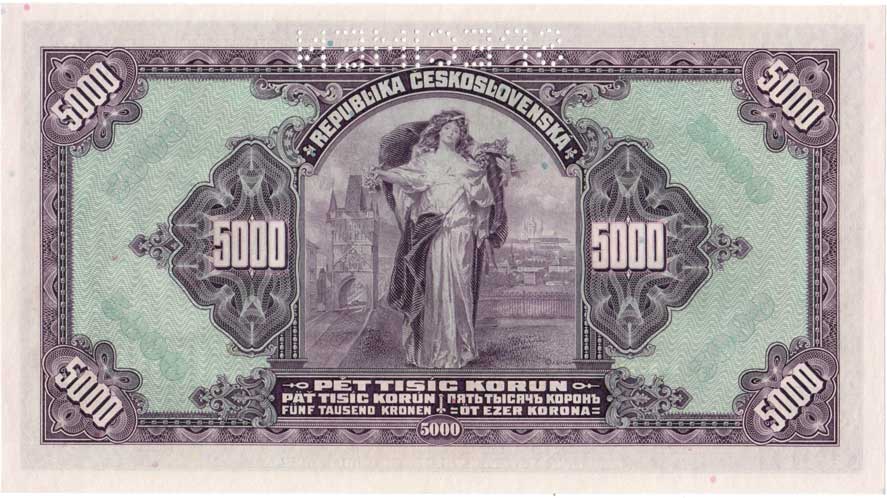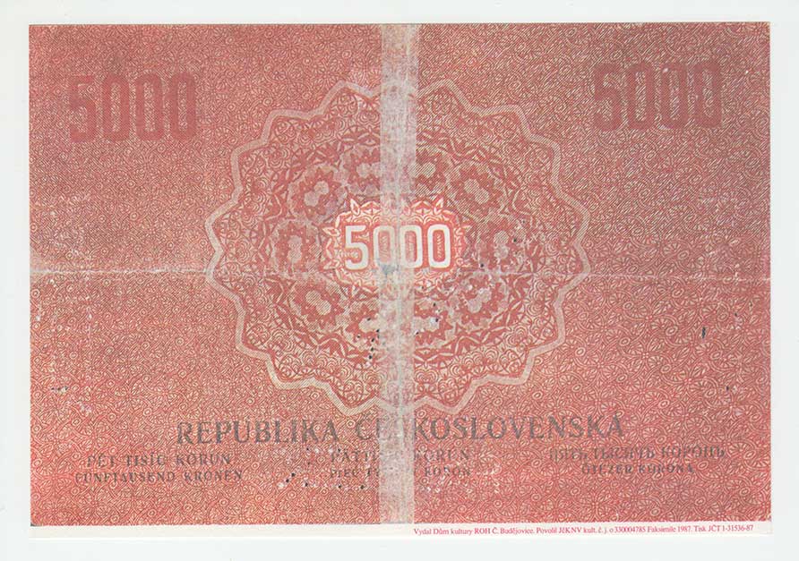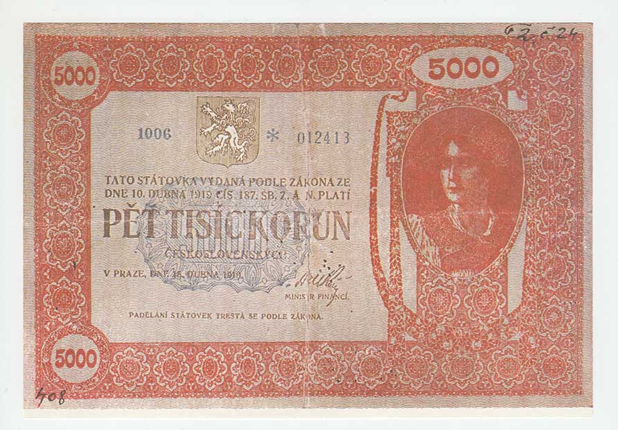 | 3126. | 5000 Koruna 1919, série 1006 - faksimile vydaná Domem