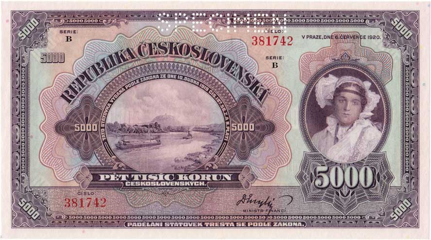 | 3128. | 5000 Koruna 1920, série B, BHK.17b, He.17b.s1,