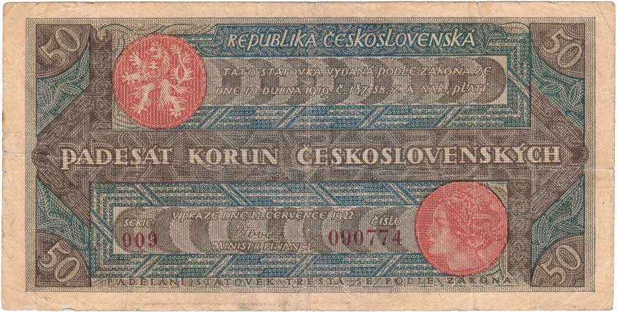 | 3133. | 50 Koruna 1922, série 009, BHK.19a, He.19a,