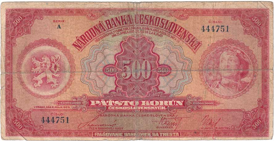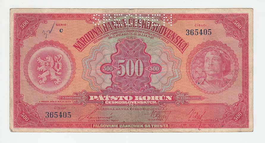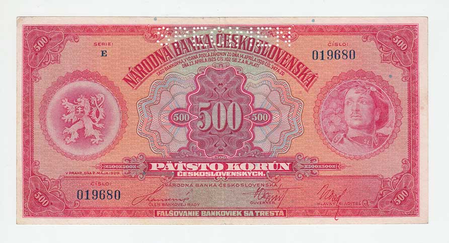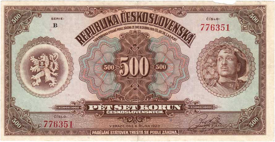 | 3134. | 500 Koruna 1923, série B, BHK.20, He.20a, "neperf.",