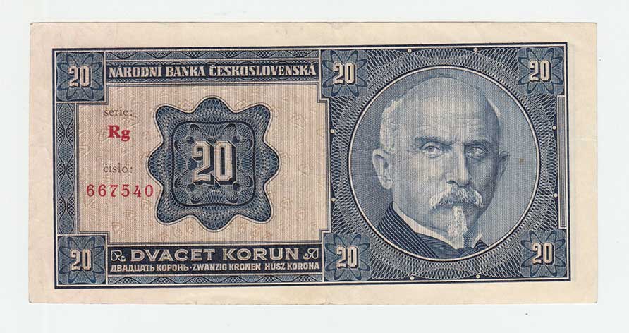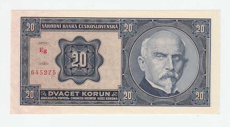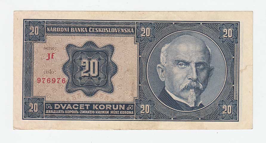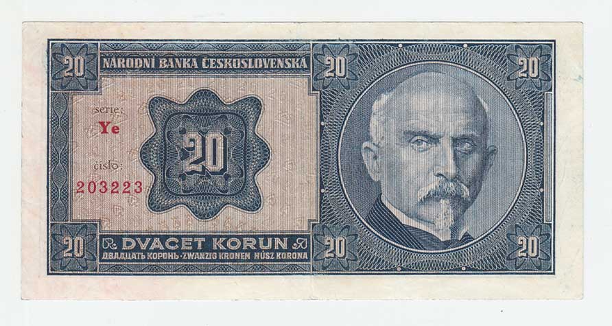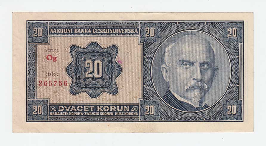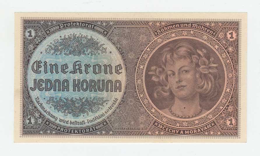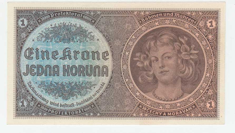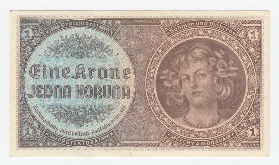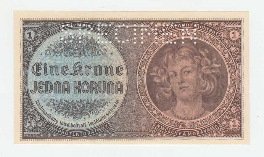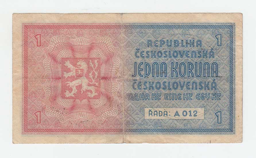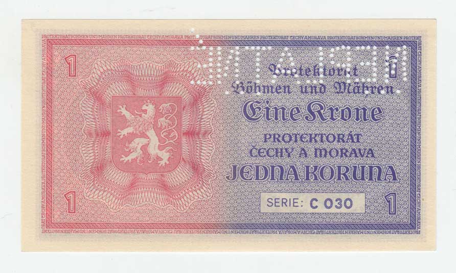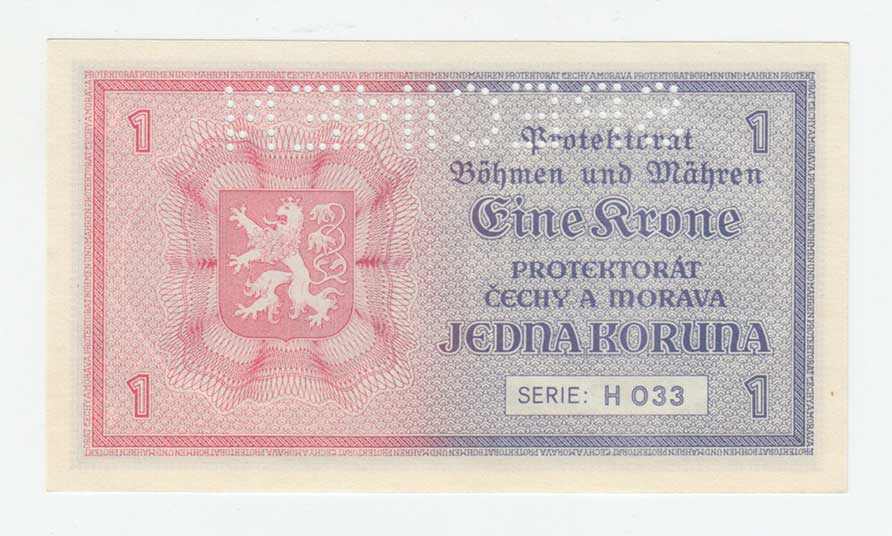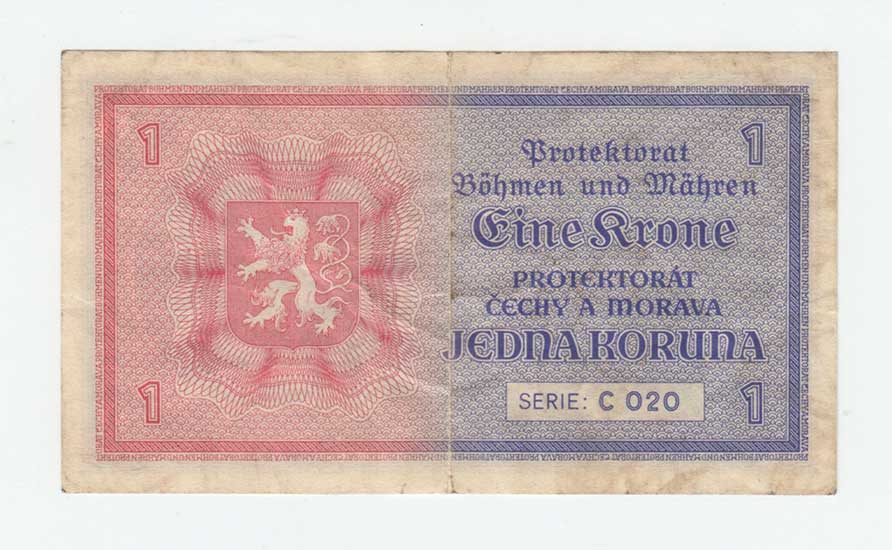 | 3187. | 1 Koruna (1940) - série B014, BHK.30, He.32a,