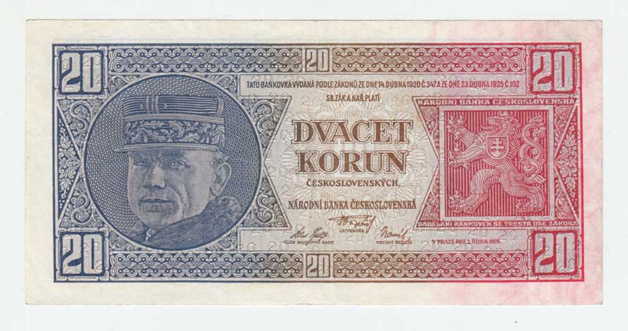 | 3137. | 20 Koruna 1926, série Og, BHK.21b2, He.21c2,