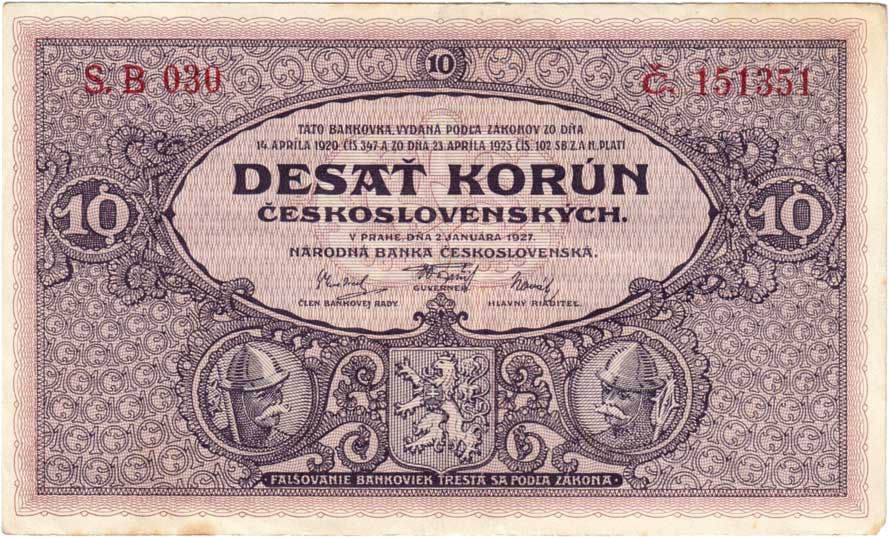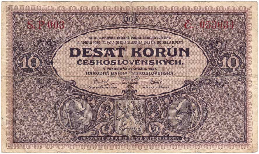 | 3141. | 10 Koruna 1927, série P003, BHK.22a, He.22a,