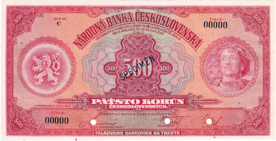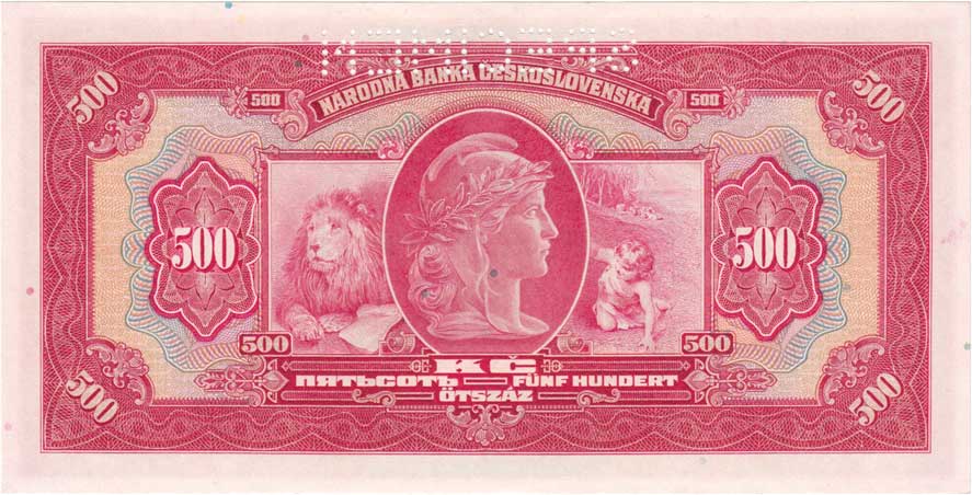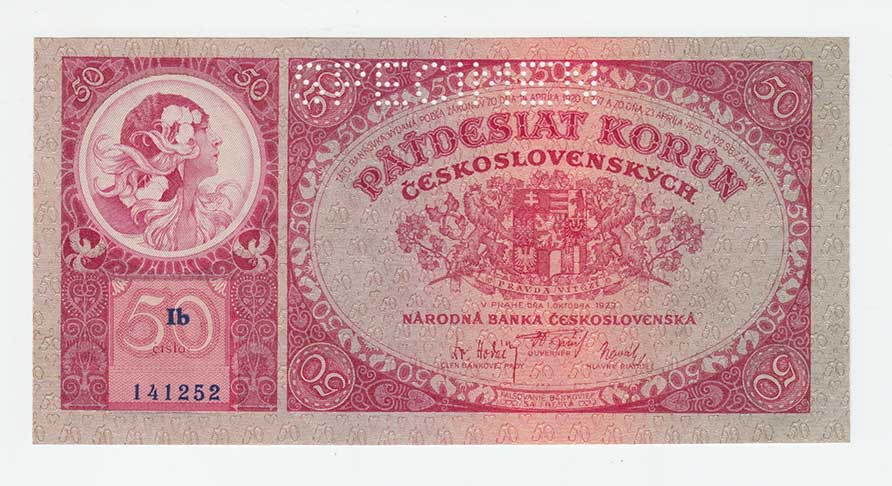 nahoře perforace "SPECIMEN" |