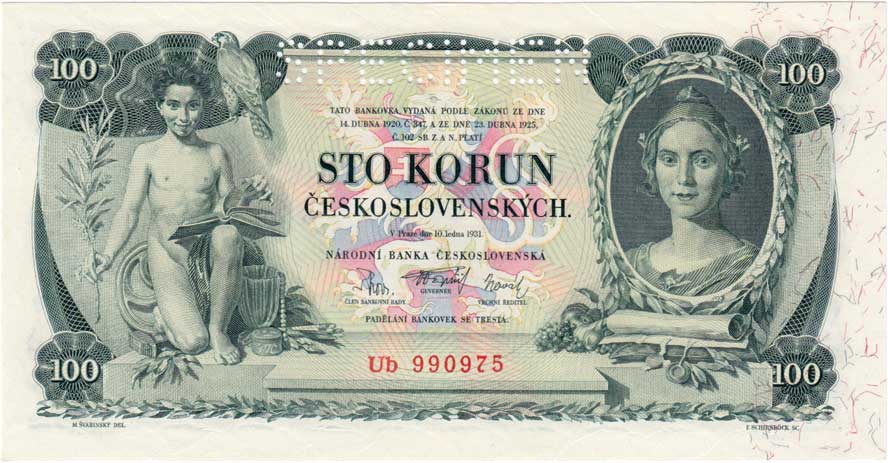 | 3161. | 100 Koruna 1931, série Ub, BHK.25c, He.25b2.s1,