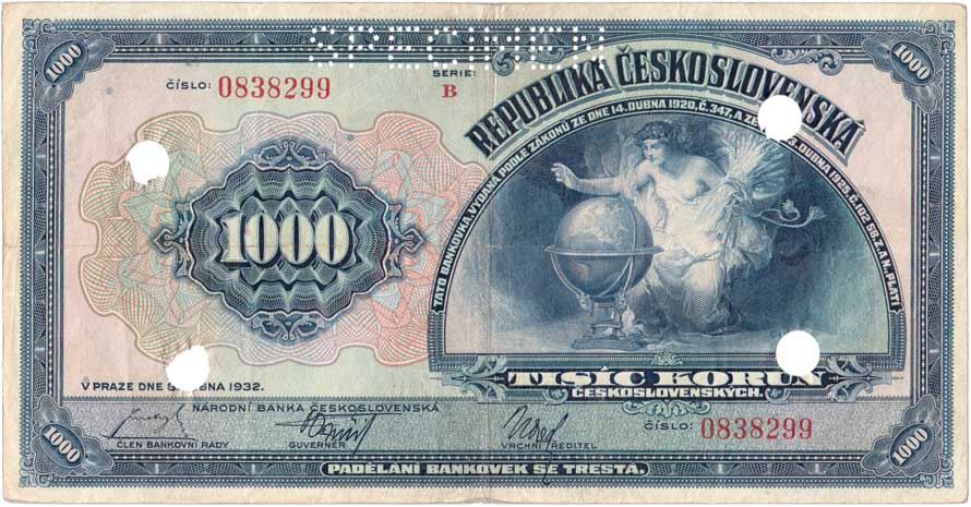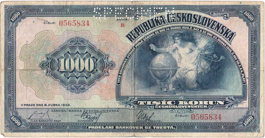 | 3164. | 1000 Koruna 1932, série B, BHK.26, He.26a.s4 - var.: