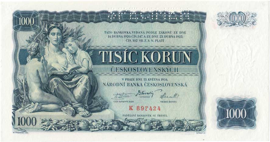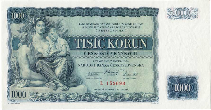 | 3167. | 1000 Koruna 1934, série K, BHK.27, He.27a.s1,