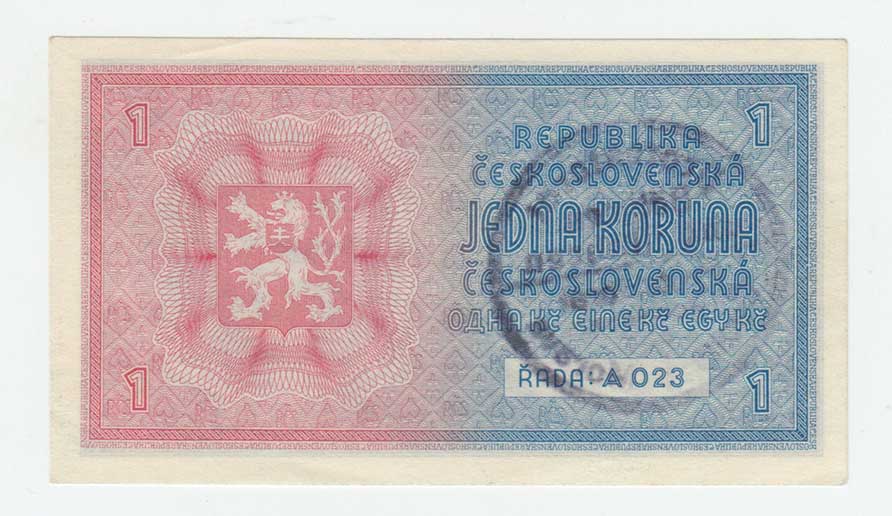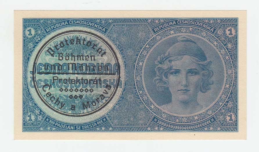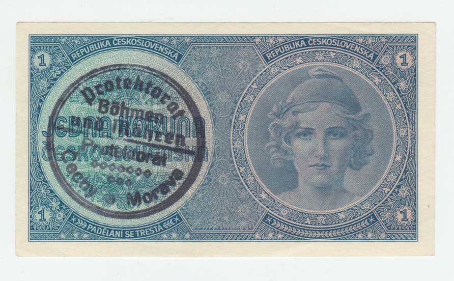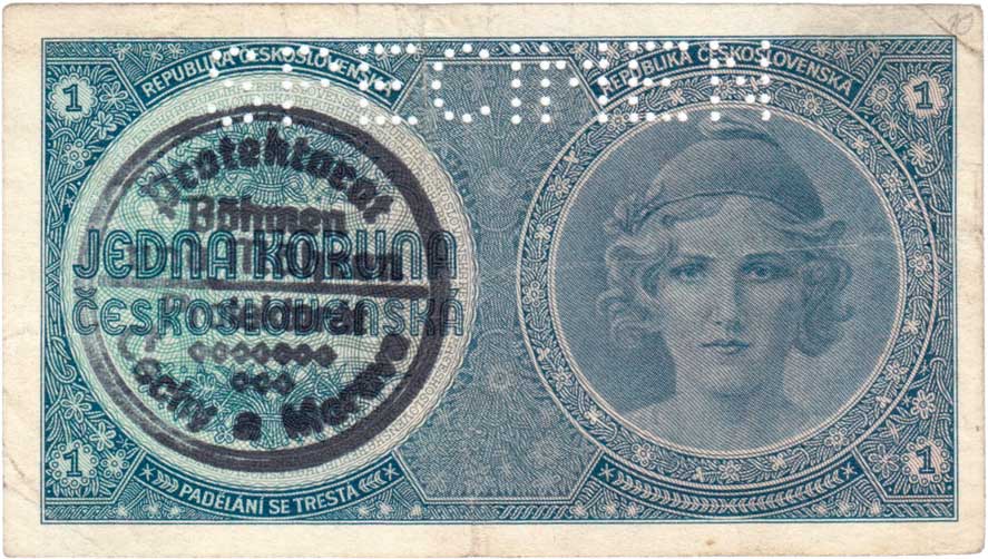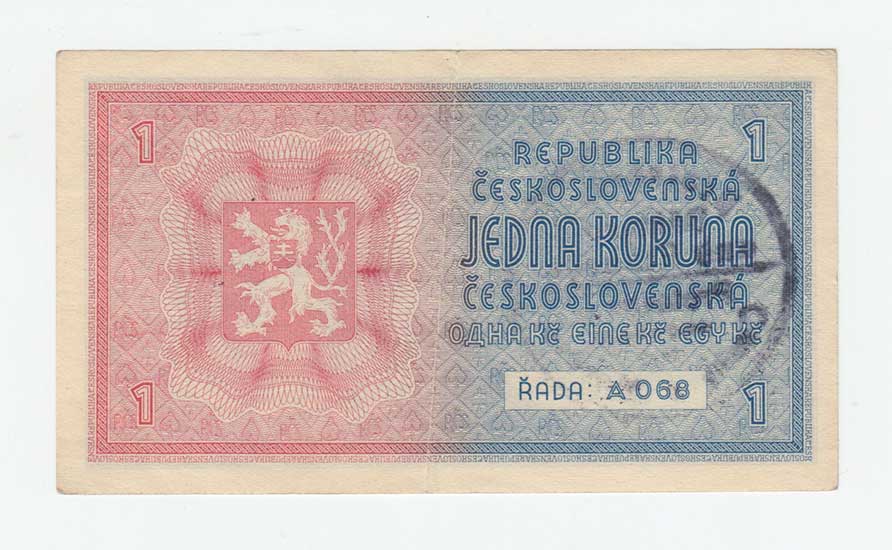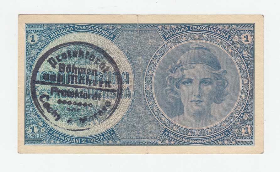 | 3175. | 1 Koruna b.l. - ruční přetisk, série A068, BHK.28a,