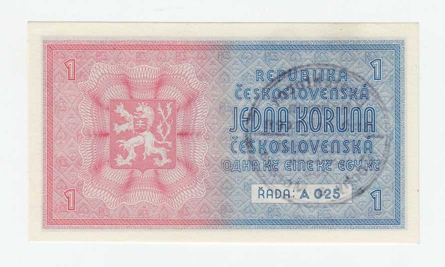| 3173. | 1 Koruna b.l. - ruční přetisk, série A025, BHK.28a,