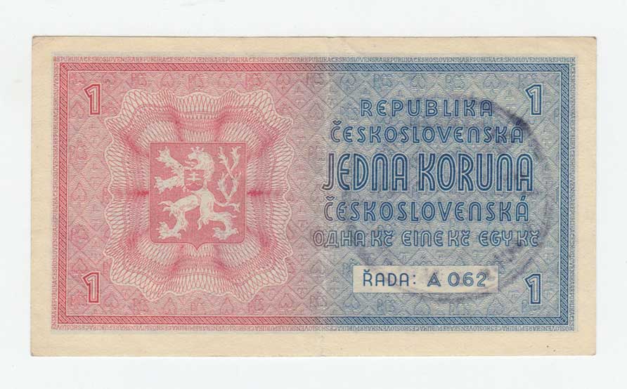 | 3174. | 1 Koruna b.l. - ruční přetisk, série A062, BHK.28a,