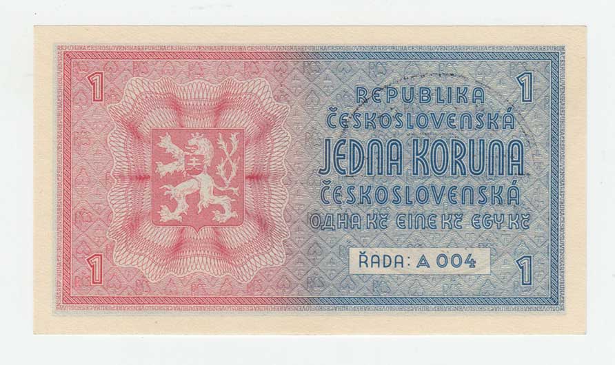 | 3177. | 1 Koruna b.l. - stroj.přetisk, série A004, BHK.28b,