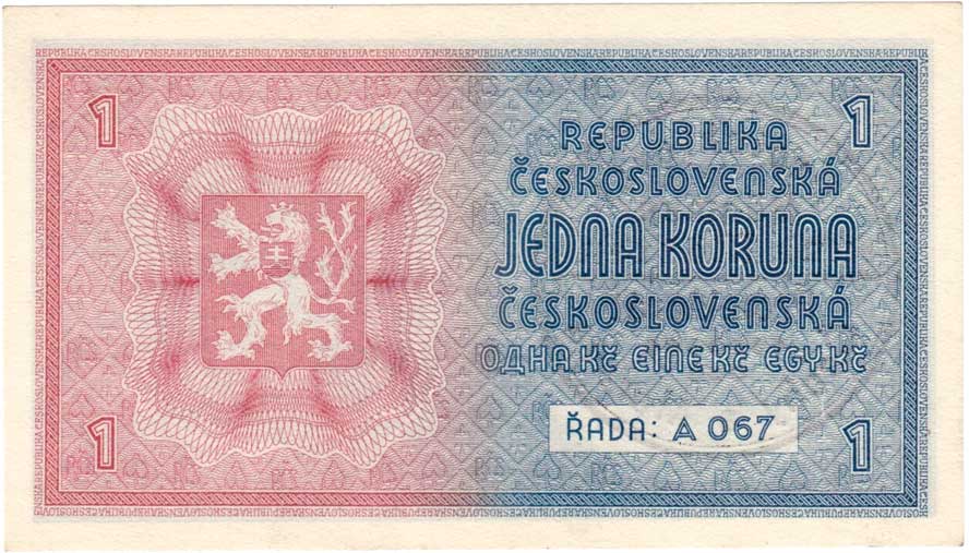 | 3181. | 1 Koruna b.l. - stroj.přetisk, série A067, BHK.28b,