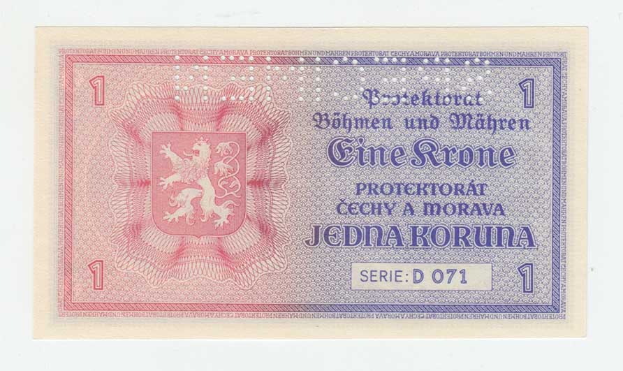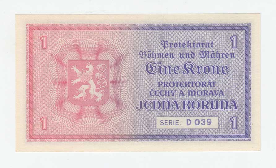 | 3193. | 1 Koruna (1940) - série D039, BHK.30, He.32a,