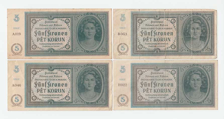 | 3200. | 5 Koruna (1940) - série A019, A046, B053, H022,