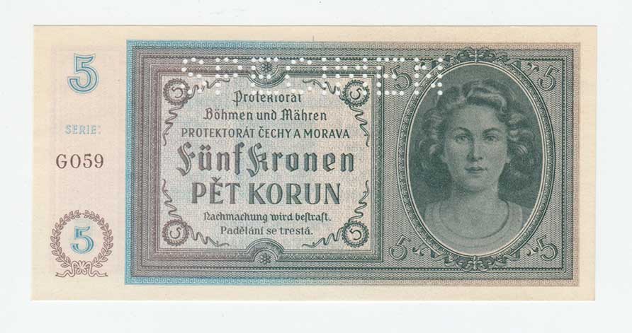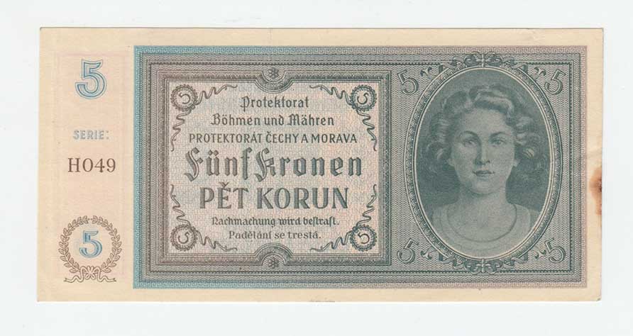 3205. 5 Koruna (1940) - série G059, BHK.31, He.33c.s1,