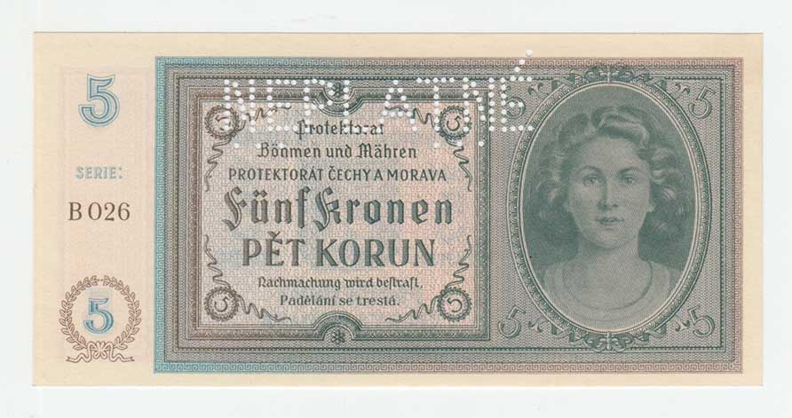 3206. 5 Koruna (1940) - série B026, BHK.31, He.33a.s2,