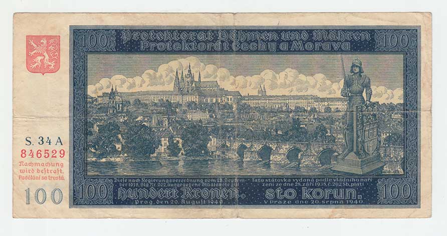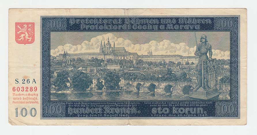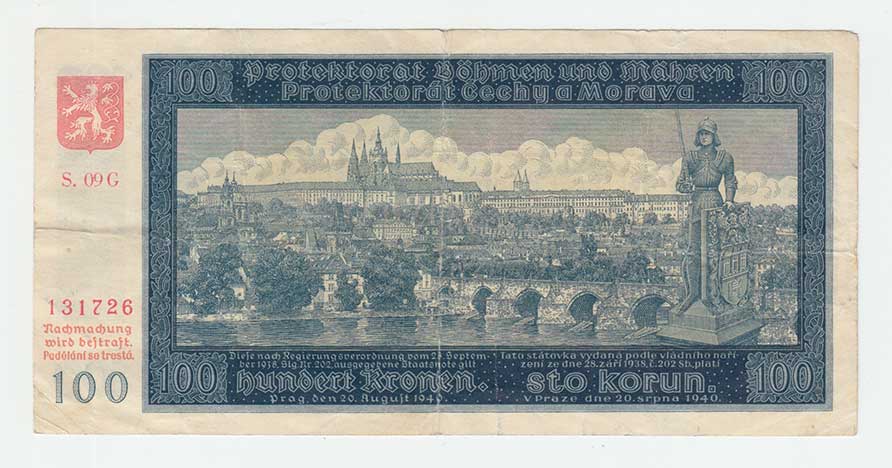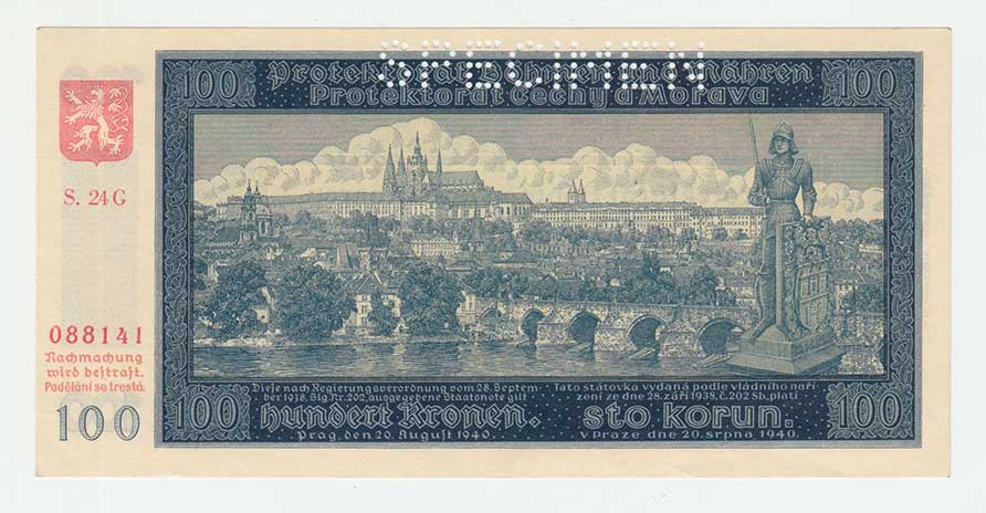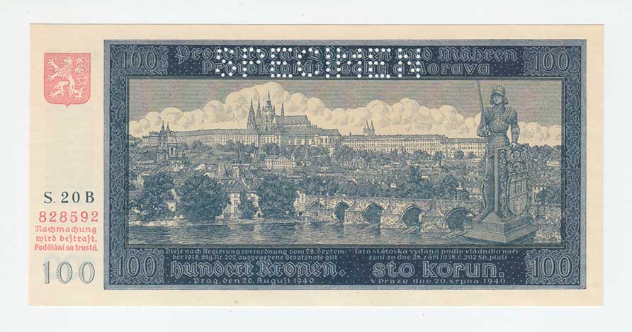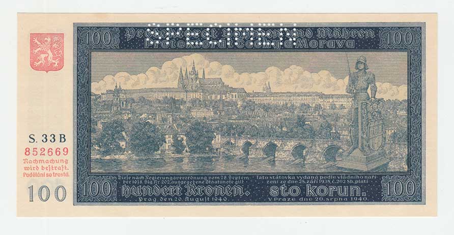 3286. 100 Koruna 1940, 2.vydání, série C6, BHK.49aA,