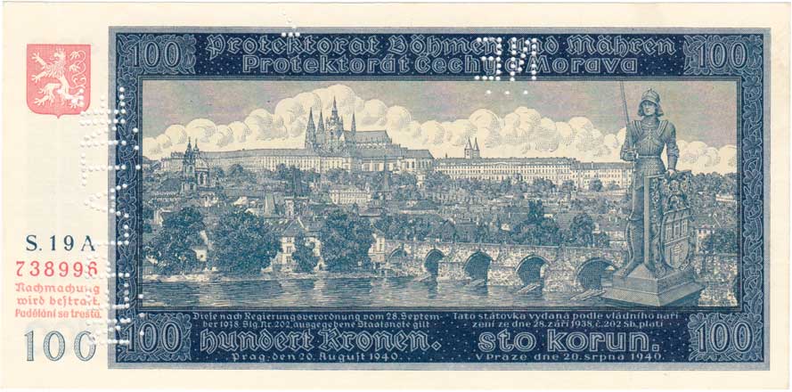 3211. 100 Koruna 1940 - 1.vyd., sér.19A, BHK.32, He.34a.x,