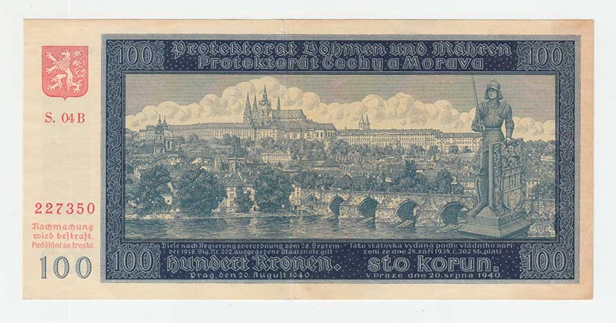 3216. 100 Koruna 1940 - 2.vyd., série 04A, BHK.33a,