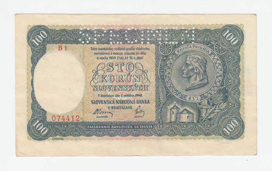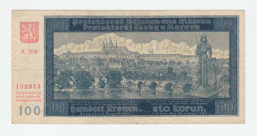 3285. 100 Koruna 1940, 2.vydání, série B1, BHK.49aA,